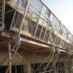 A plataforma suspensa SAFTEC® inclui um sistema autónomo que ativa automaticamente o travão de segurança ao ser colocada nos suportes. Está equipada com redes de proteção e as suas extremidades são protegidas com proteções laterais, permitindo a circulação e a segurança dos utilizadores.