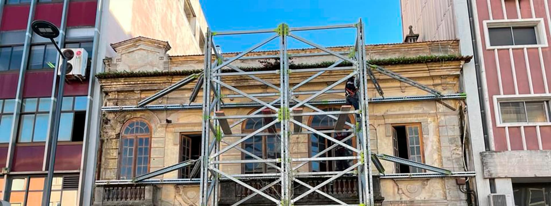 Manter a segurança total da fachada tendo em conta que é um edifício antigo e manter também a segurança das pessoas, pois está localizado na Avenida Lourenço Peixinho, uma das mais movimentadas ruas de Aveiro.