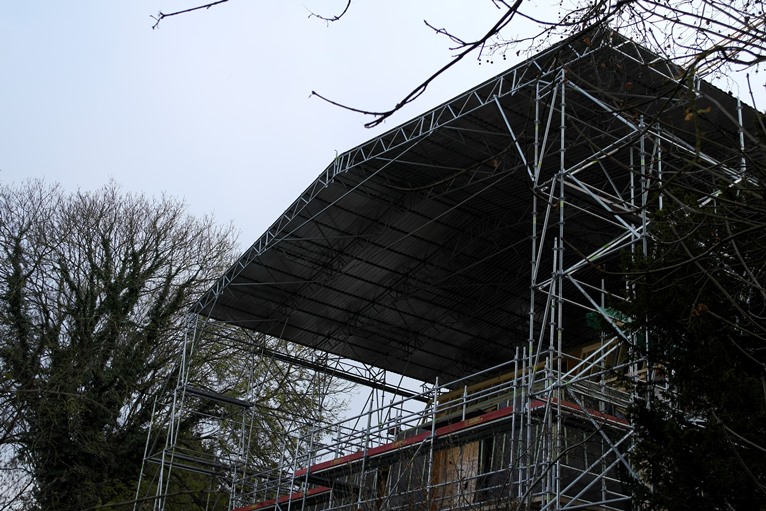 O objetivo do andaime Metalusa será permitir os trabalhos no interior e exterior do edifício enquanto se cria uma nova fachada e cobertura. Além disso, a estrutura do andaime que envolve todo o edifício.